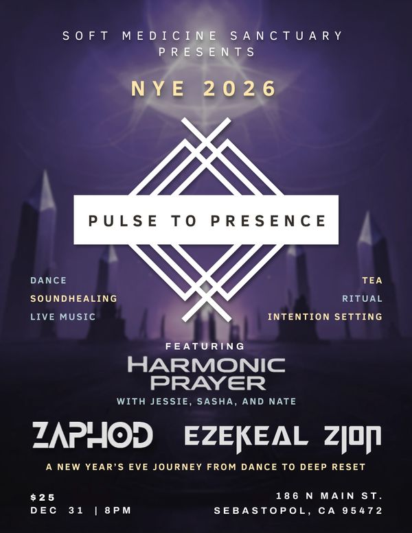 A New Year’s Eve Journey from Dance to Deep Reset at Soft Medicine. Meet the new year with Activity and Receptivity: Two sections of the night, with dance leading into an immersive sound journey experience.
